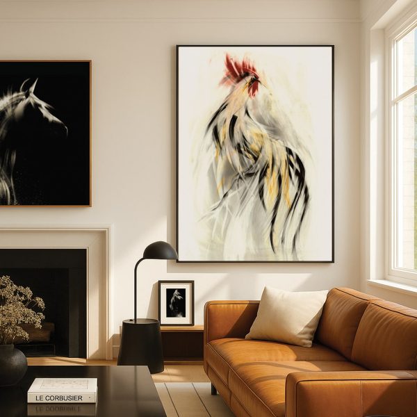 • „Tryptyk Seria Koguty” – kompozycja z charakterem, która wprowadza energię i staje się centralnym punktem dekoracyjnym przestrzeni.