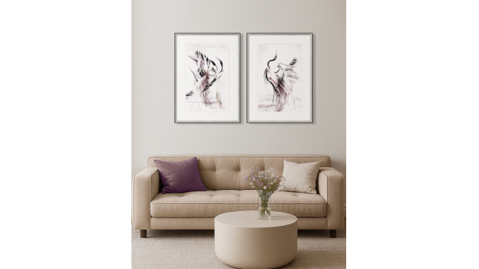 Grafiki za szkłem z Galerii w Chmurach często mają czystą, subtelną kolorystykę, która współpracuje z atmosferą jadalni bez efektu chaosu – dodają elegancji i poczucia świeżości, nie tłumiąc rozmów przy stole.